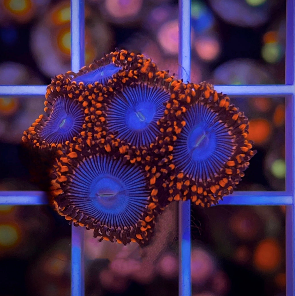 This unique and beautiful coral is sure to be the focal point of your z&p collection. With its vivid and contrasting red and blue colors, striking patterns, and large size it is the crème de la crème of the designer zoanthids.