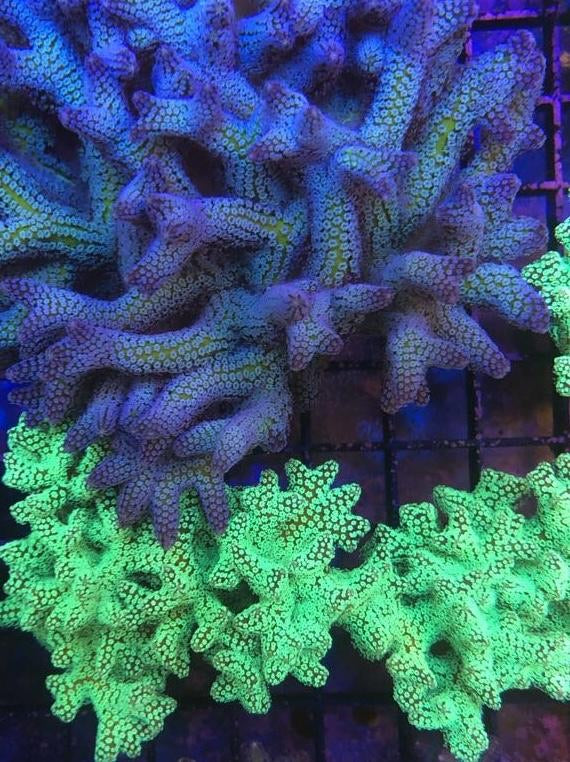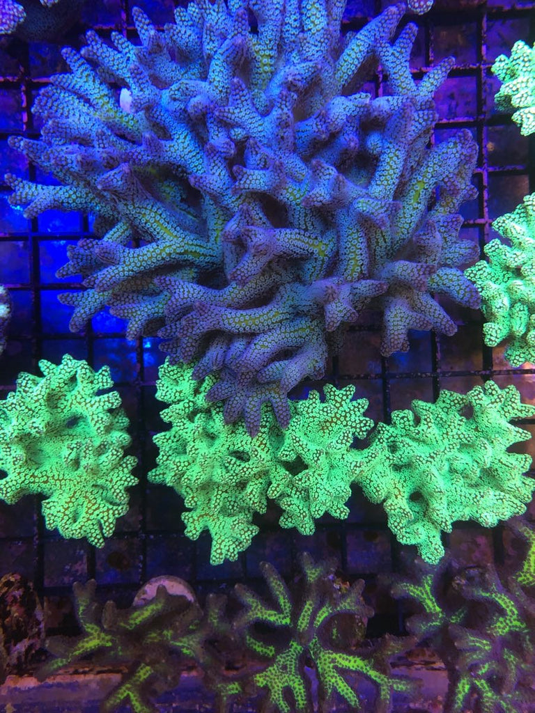A few years ago I had a spawning event in my reef. A standard ORA green birdsnest and ORA Bird of Paradise cross pollinated and created this new morph that is blue and turquoise. I call it the Blue Zing.