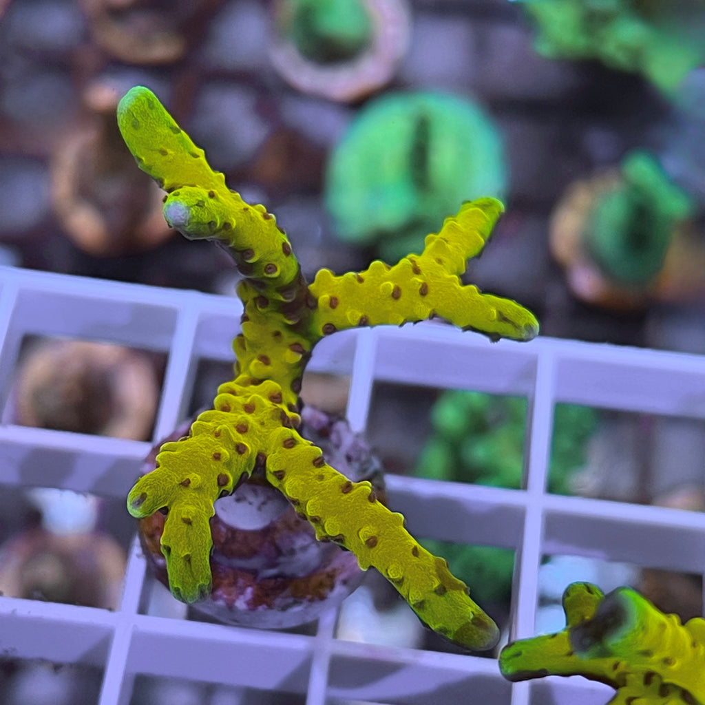 This is a stunning and easy to keep anacropora. I will try to get it to you in one peice however even with protection it is suseptile to breakage. Bouncing around on a UPS truck even though no branches are in contact with anything due to the Tidal Guard protection the branches can still break. There is no guarantee or refund on this one for breakage. If it does break it will be just fine. Look at the little nubs that other retailers sell.