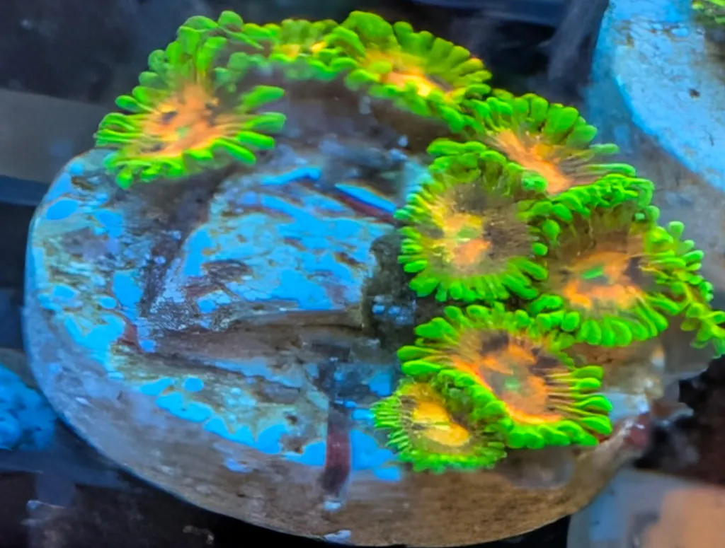 All zoanthids are incredibly vibrant, unfortunately shipping got delayed and the corals were DOA, sent pictures and they shipped a new order right away no questions asked and they even had more polyps then described. Will definitely be a return customer.
