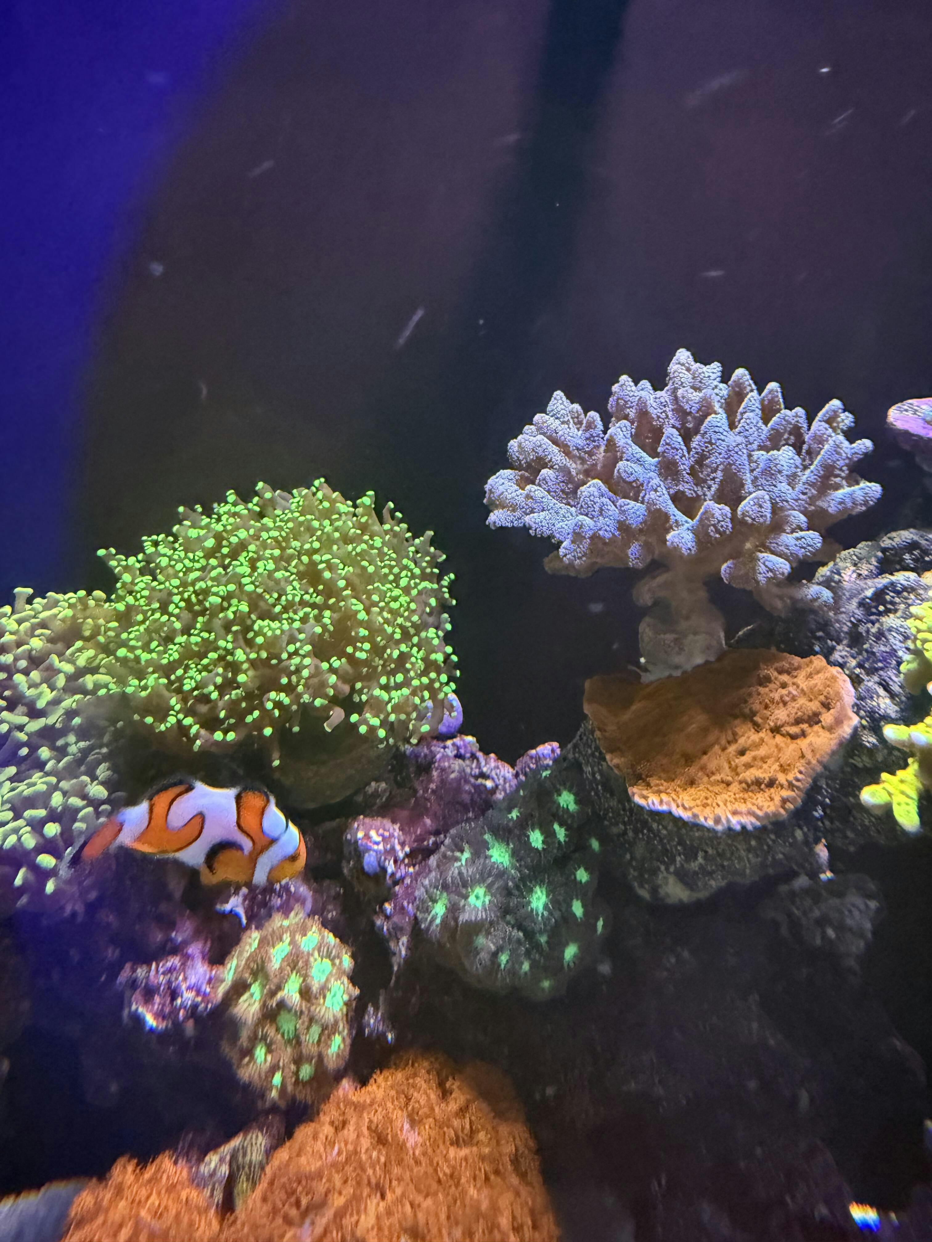 This is a Lazys Coral House exclusive that I have been culturing since 2010 . Super long lashes that are bright yellow with a orange disk and blue center. These hardy zoas won’t take long to be the centerpiece of your reef.